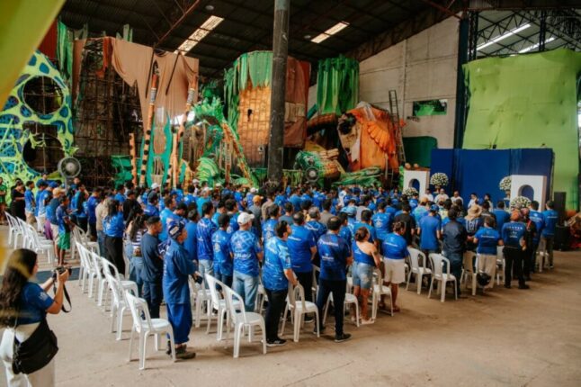 Já o Boi Caprichoso realizou, na segunda-feira (16), a missa de abertura dos trabalhos no Galpão Central de Alegorias Mestre Jair Mendes. A celebração reuniu artistas, diretores, colaboradores, conselheiros, sócios e torcedores do boi azul e branco em um momento de fé, união e devoção antes do início da intensa jornada de preparação para o festival.