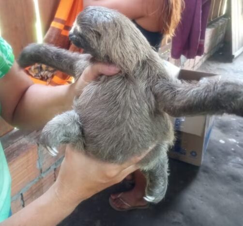 Criado como pet e com unhas pintadas, filhote de bicho-preguiça é resgatado em Parintins