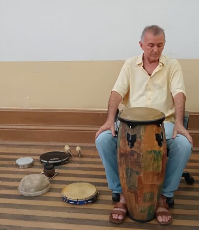 Eliberto de Souza Barroncas, de 67 anos, é professor, artista visual e músico amazonense. Natural de Autazes, ele viveu na cidade de 1958 a 1975, período marcado por sua convivência às margens do “Paranã” do rio Autaz Mirim. Essa experiência marcou profundamente sua formação artística, inspirando suas criações a partir das sonoridades naturais e do modo de vida dos povos ribeirinhos.