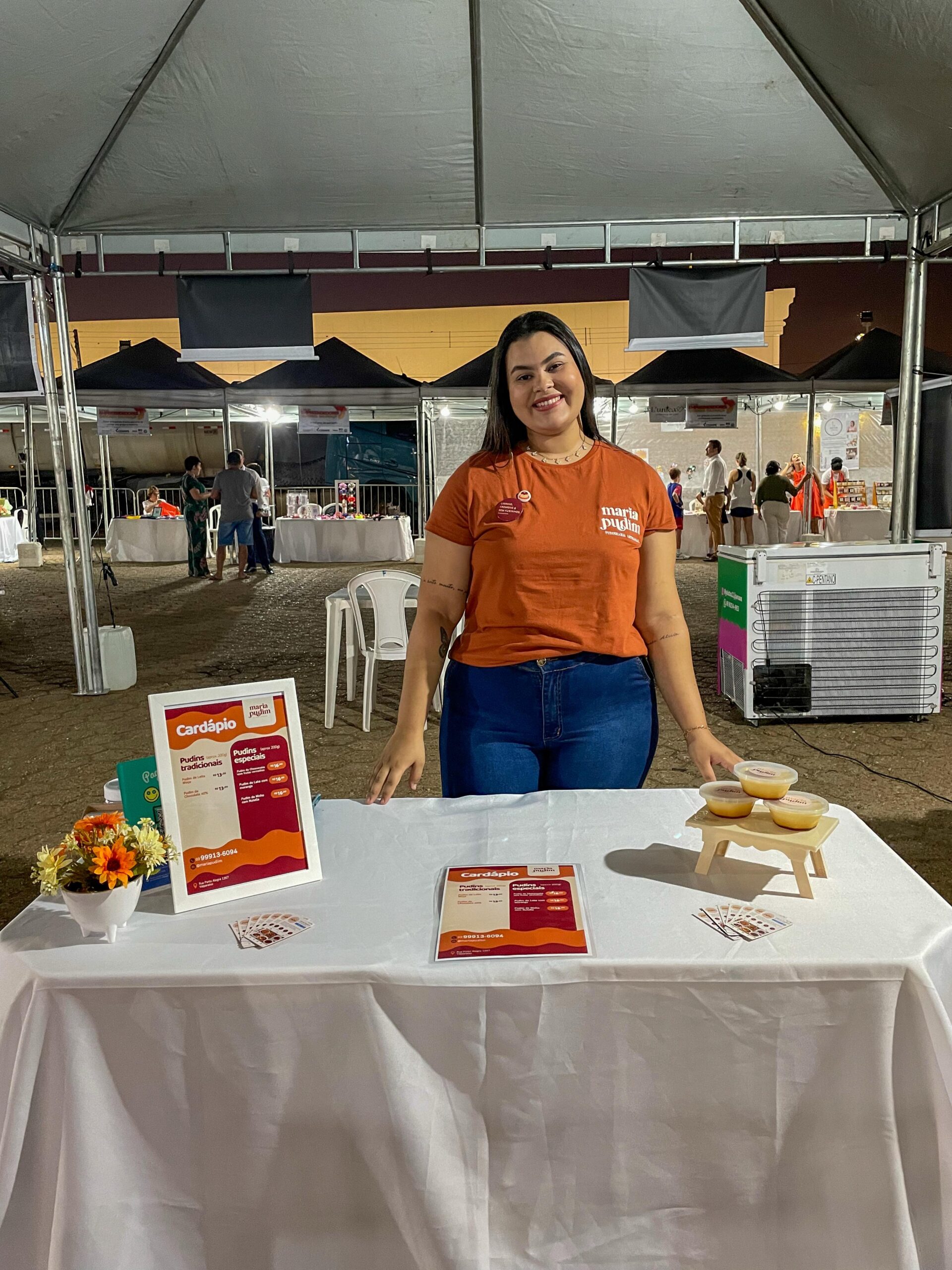 O nome “Maria Pudim” veio da união entre a paixão de Aline pela sobremesa e o desejo de criar uma marca fácil de memorizar. Ao perceber que não existia delivery de pudim na cidade, viu ali uma oportunidade. Com produção 100% artesanal, feita em casa, o pudim tradicional de leite condensado é o carro-chefe. Para ela, o doce representa superação: “Existe uma Aline antes e depois da Maria Pudim. Eu achava que não era capaz de empreender, mas descobri que sou”.