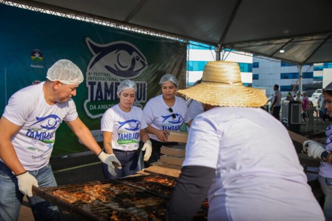 Os servidores, do Governo de Rondônia, trabalharam de forma voluntária para garantir o sucesso do 4º Festival do Tambaqui. As equipes se distribuíram em funções desde o preparo, até embalar e entregar aos consumidores que haviam realizado a compra com antecedência, facilitando a organização do evento.