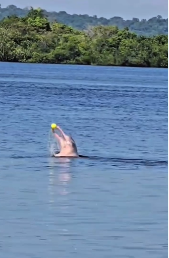 Vídeo: botos são flagrados brincando de bola nas águas do Rio Negro, em Novo Airão